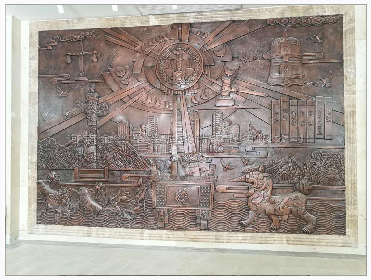 法院清廉浮雕墻因?yàn)檠b飾需求,大堂浮雕墻在法院清廉浮雕墻的裝飾中運(yùn)用較多,浮雕質(zhì)感古樸典雅,大方美觀,
